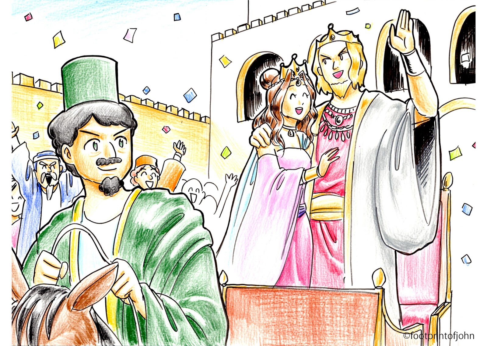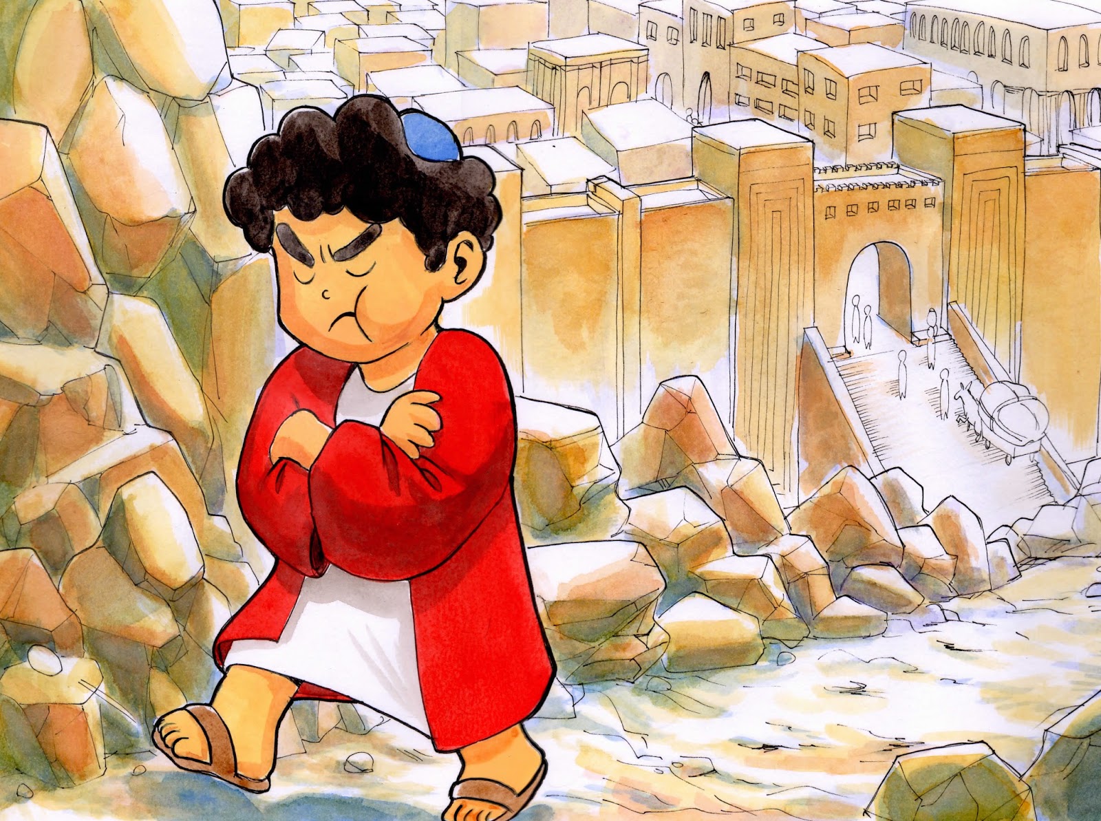 ヨナはニネベの街に着きました。そこはとっても広い街でしたが、ヨナは端から端まで歩き回って、神様から聞いた言葉を一生懸命叫びました。