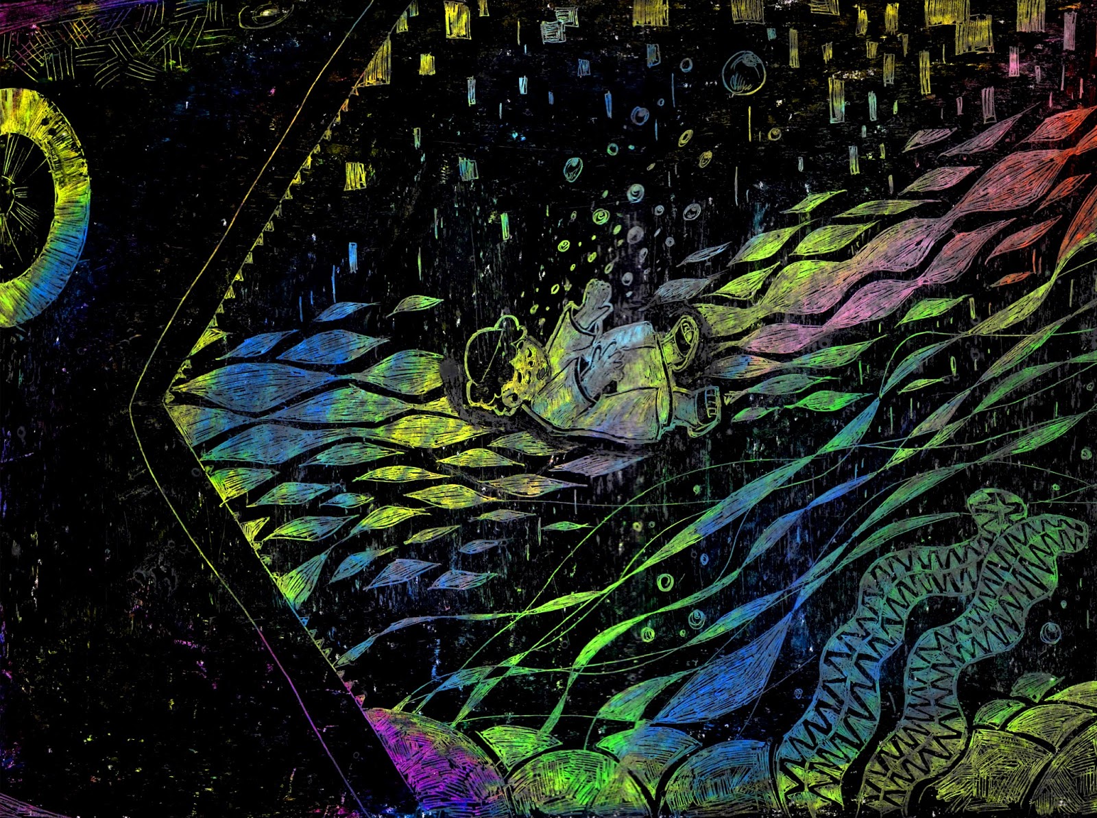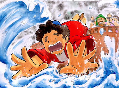 ヨナは、ブクブクブクと、沈んで行きました。息ができません。苦しくて苦しくて、ヨナはついに神様にお祈りしました。