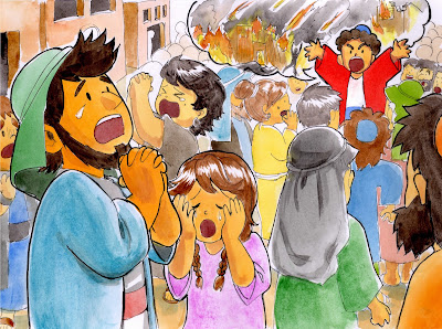 「ああ、なんてこった。大変だ!みんな、もう悪いことをするのはやめて、神様にお祈りをして、あやまるんだ」