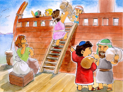 ヨナはお金を払って、急いで船に乗りました。